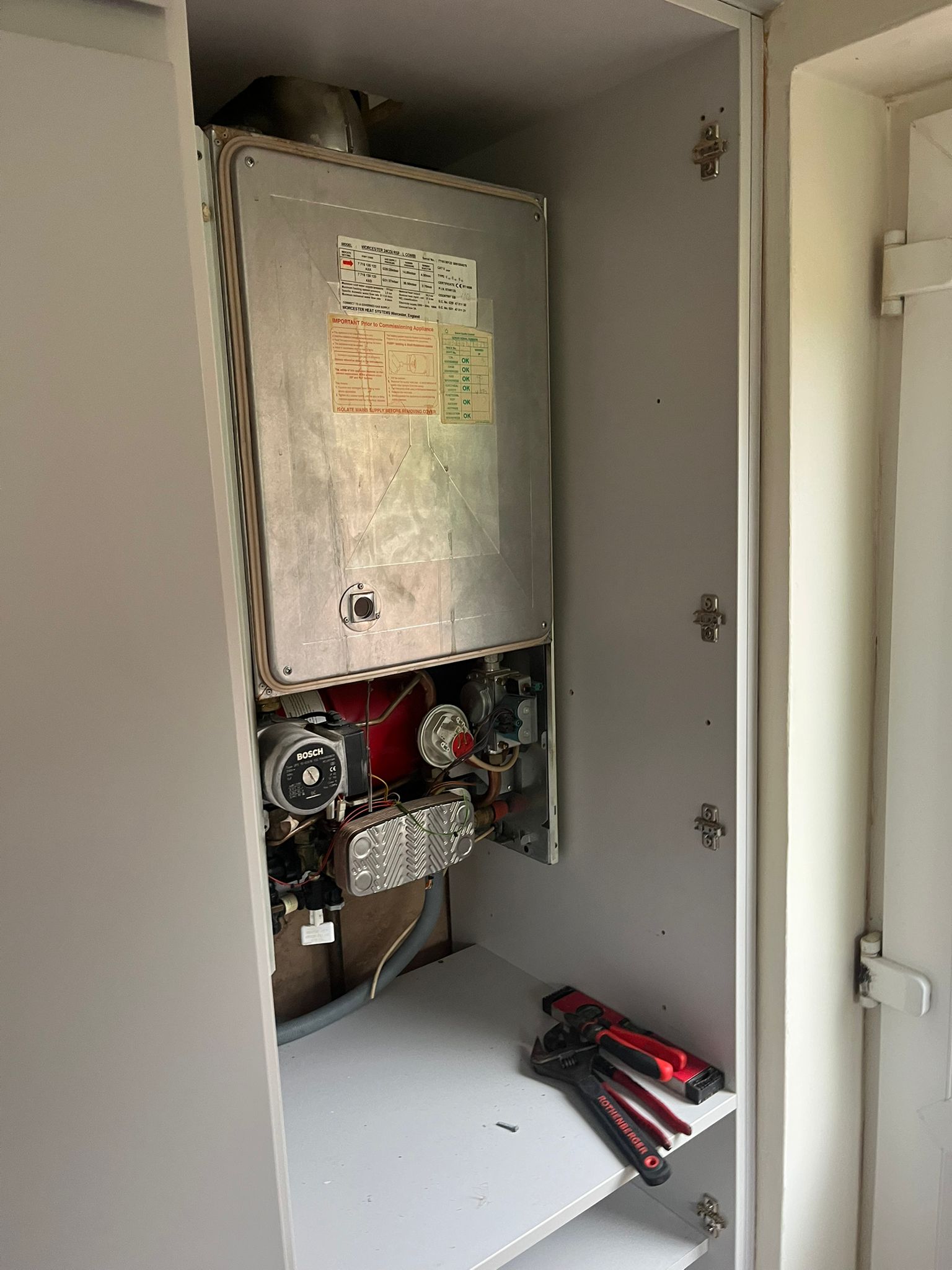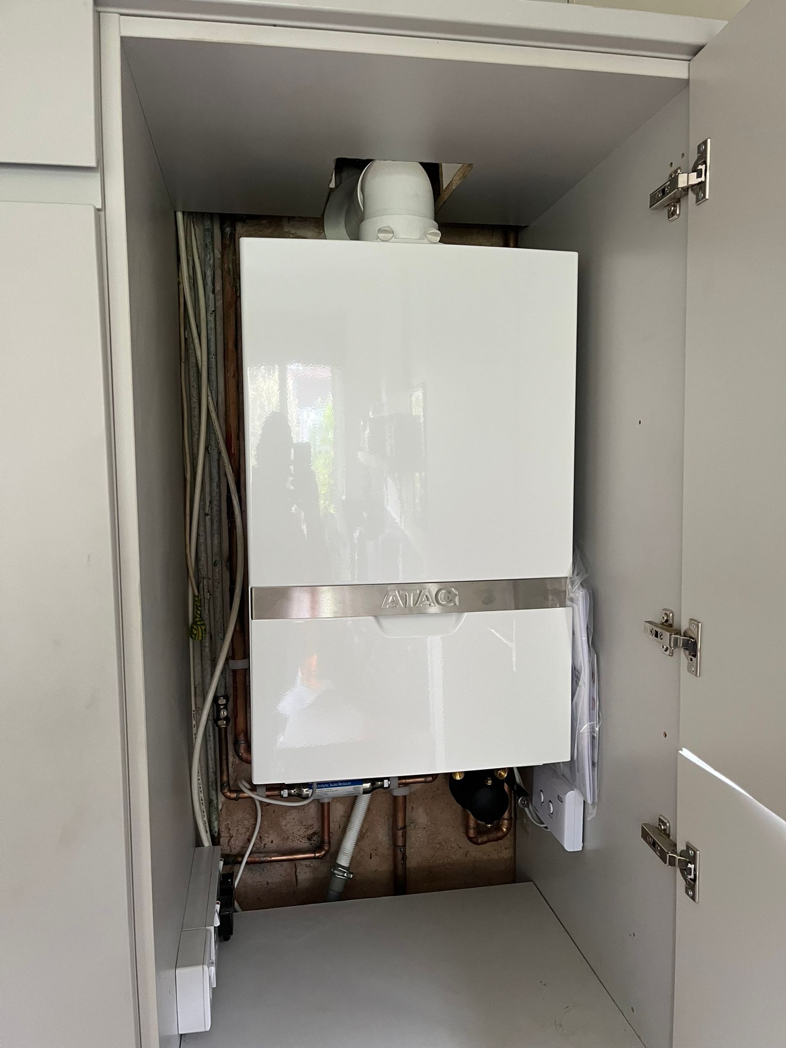 Old boiler 20+ years old finally given up. Customer opted for the ATAG i24c with an 18 years parts and labour warranty and covered under our service plan for her annual services going forward which means they have 18 years worry free boiler problems